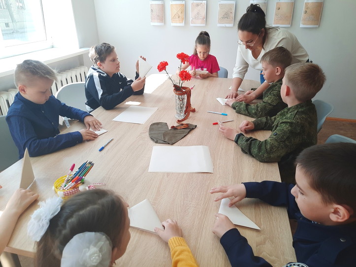 Военно-патриотическая игра - квест «Фронтовые дороги» - объединила юных читателей. Сформировав команду и получив путеводную карту, ребята с азартом включились в игру. Мальчишки и девчонки увлечённо следовали своему маршруту, а по пути следования отгадывали загадки, собирали армейский вещмешок, писали письма своим прадедам-фронтовикам и учились складывать их как фронтовые треугольники, знакомились с книжными выставками, узнавали истории создания военных песен и хором их пели. Время пролетело незаметно, участники квеста, продемонстрировав эрудицию, находчивость и отличное знание литературных произведений, военных песен, успешно добрались до финиша и сложили из найденных букв заветное слово «ПОБЕДА»