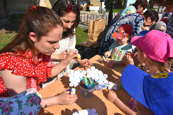 Участники игротеки все вместе отгадывали загадки, продолжали пословицы и поговорки о семье, принимали участие в мастер-классе по изготовлению ромашек, а также учились водить разного вида хороводы и играть в хороводные игры.