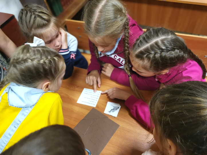 Расшифровывать послание от Лешего знакомому всем сказочному персонажу помогали три команды: «Черные вороны», «Черные коты» и «Филины». Участники прошли по следам Лешего, который успел посетить все отделы библиотеки. Ребята собрали «улики» - прочитанные Лешим книги. В процессе расследования участники квеста научились искать нужные книги в фонде библиотеки, пользоваться картотекой заглавий и алфавитным каталогом. В читальном зале пришлось разгадывали логические головоломки, а в холле библиотеки проявить свою храбрость и отвагу - достать подсказку из «Колодца неизвестности». Когда все подсказки были собраны, члены команд составили послание для Бабы Яги от Лешего: «Леший хочет всё знать!».
