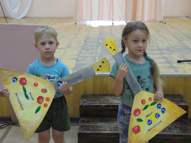 Загадки помогли ребятам узнать интересные факты о том, что неофициальными символами страны являются берёза, матрёшка, лапти, самовар и балалайка. Рассматривая разные матрёшки, искали отличия в нарядах куклы. Для балалайки нарисовали свой орнамент. Под песню «Эх, лапти мои» вели разговор о коре деревьев для изготовления русских лаптей. В заключении посмотрели мультфильм, созданный по стихотворению Даниила Хармса «Иван Иваныч Самовар».