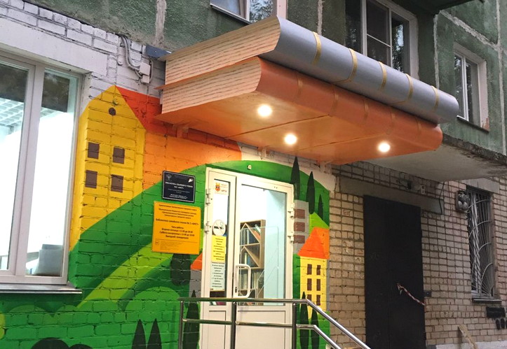 Фасад модельной библиотеки семейного чтения № 2 «Аист» в северо-западном районе города символично украсили изображения читающих семей и летящих аистов, символа семьи и семейных ценностей. Территорию возле библиотеки благоустроили скамейками и велопарковкой, козырек над входом в библиотеку превратился в стопку книг.