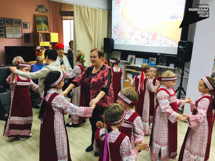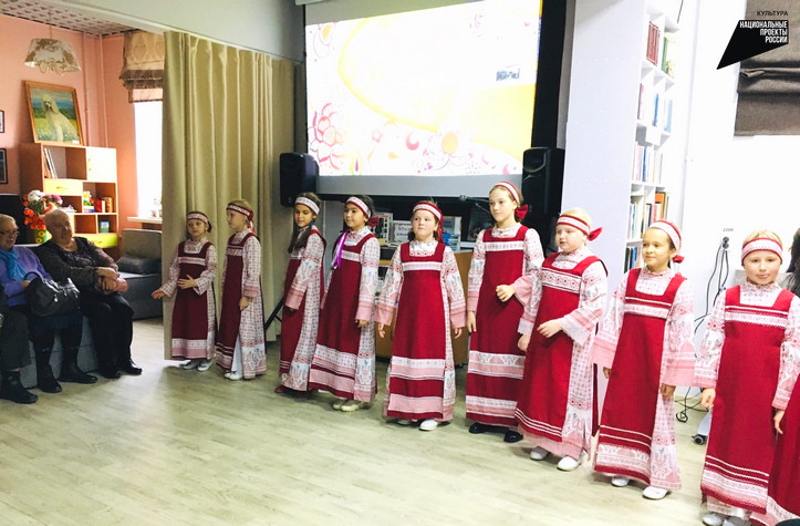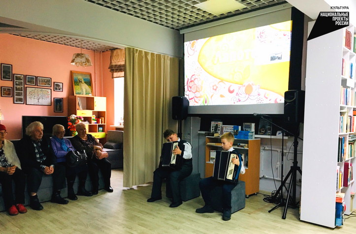 Вторая часть встречи стала праздничной, ведь в гостях у библиотеки был фольклорный коллектив «Лапоточки» под руководством С.Б. Ростовцевой. Участники коллектива исполнили народные песни, провели с участниками мероприятия русские народные игры. Порадовало гостей выступление юных баянистов из МБУДО ДМШ №1 Зуева Андрея и Еськина Андрея под руководством Т. В. Забродиной. А потом было общение, так необходимое пожилым людям. Неспешный задушевный разговор сопровождался исполнением любимых песен.