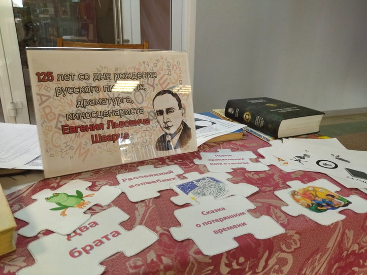 В день рождения писателя библиотекари отдела обслуживания рассказывали интересные факты о жизни и творчестве любимого писателя, зачитывали полюбившиеся отрывки из его произведений, а также предлагали поучаствовать в викторинах и творческих заданиях. Маленькие читатели с увлечением составляли пазлы, соединяя название и героя сказки в единое целое, по фотографии определяли название фильма-сказки, поставленного по произведению Евгения Шварца. Взрослые читатели узнавали цитаты из фильмов и по ребусам отгадывали литературных героев.