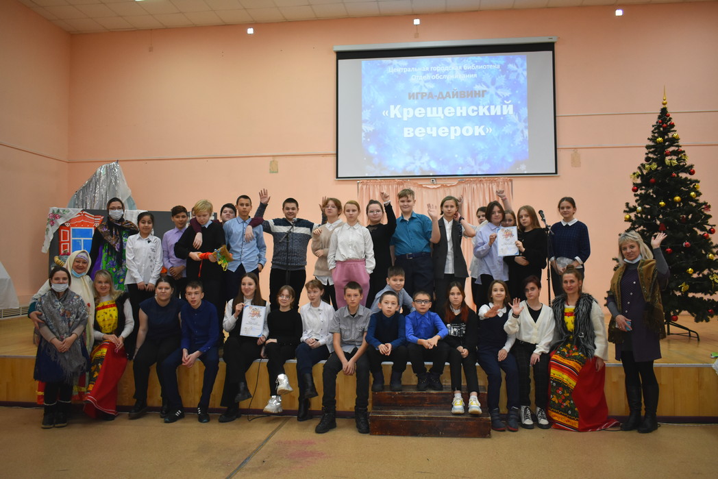 А в большом зале Центральной городской библиотеки проходили святочные гуляния «Пришли Святки – гуляй без оглядки!». 18 января, в Крещенский сочельник, с обрядами и традициями Святок в игровой форме знакомились ветеранские организации и клубы по месту жительства для ветеранов: Центральный территориальный Совет ветеранов, Новозлатоустовский Совет ветеранов «Звездочка», клуб по месту жительства для ветеранов «Жить здорово». 19 января, в само Крещение, – учащиеся школы № 18.