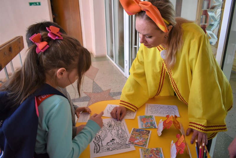В этот день на каждом этаже главной библиотеки города располагались игровые и интеллектуальные площадки, где ребятам предлагалось поучаствовать в рукодельных занятиях, викторинах, игровых заданиях по народному творчеству.
