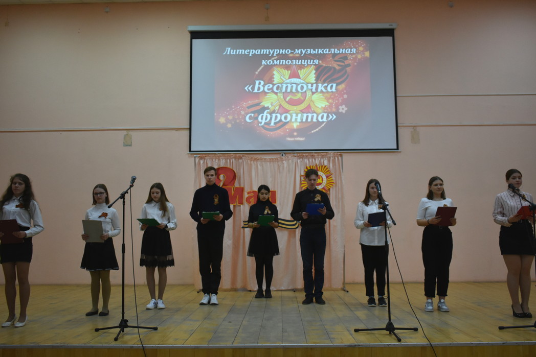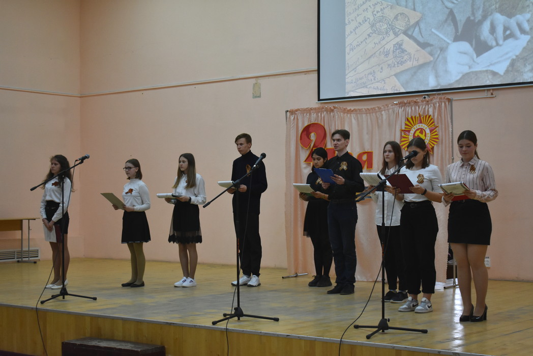 Со сцены, для своих сверстников, современные студенты и школьники читали поэтические строфы о письмах с войны современных поэтов Александра Твардовского, Иосифа Уткина, Елены Благининой, Сергея Герасимова и других.