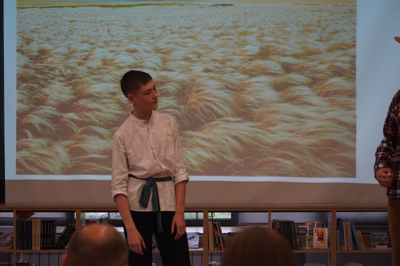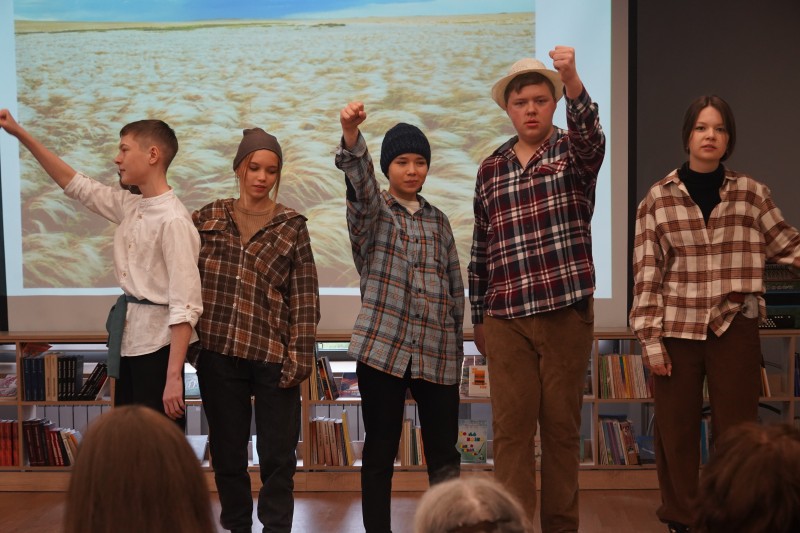 В этот день много говорили о России и русском языке. Поэтому неслучайно на площадке библиотеки звучала есенинская поэтика–театральная постановка по мотивам поэм Сергея Есенина «Анна Снегина» и «Пугачёв». В инсценировке приняли участие члены словесно-ораторского кружка школы №1 (Георгий Чернов, Дарья Ковкова, Тимофей Спиридонов, Никита Федосов, Иван Рудниченко, Валерия Шадрина, Виктория Дударкина) и студенты колледжа «Ицыл» (Иван Кочетков, Яна Цвор, Савелий Прокопьев, Максим Никулин, Полина Симон, Данил Воробьёв).