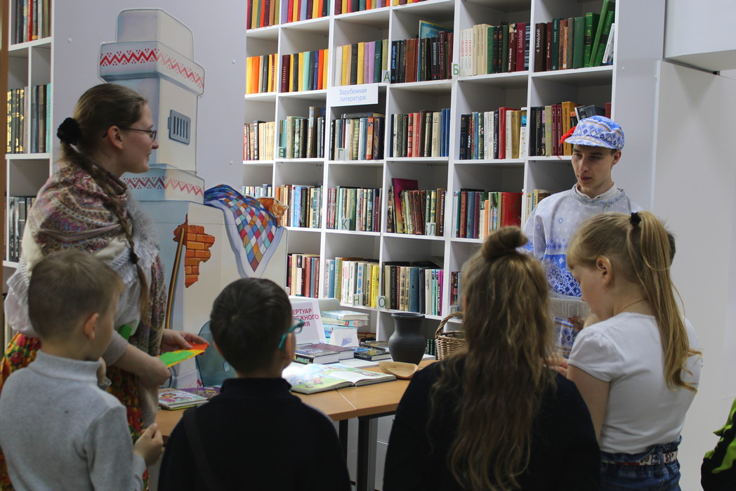 Приключения для участников квеста начались уже в информационном холле библиотеки: здесь ребят встречали сотрудники в народных костюмах, прозвучали красивые поэтические строки о России, детей разделили на три команды, которые и отправились в увлекательное путешествие по залам библиотеки.