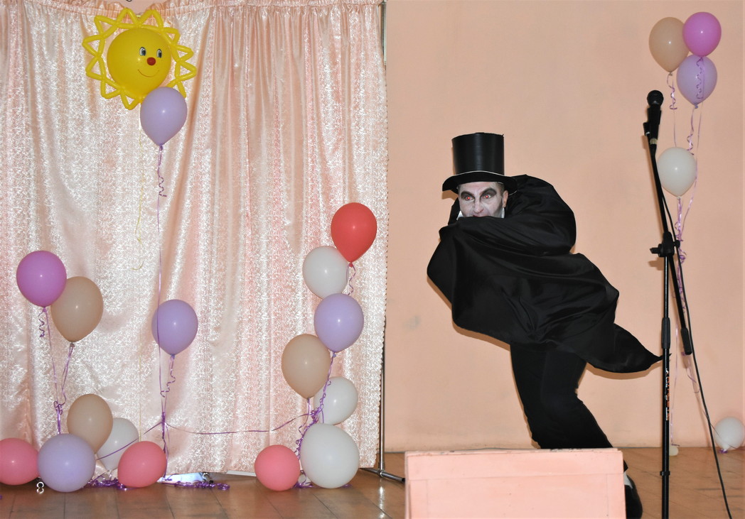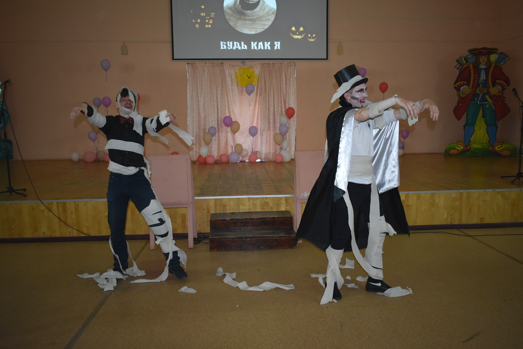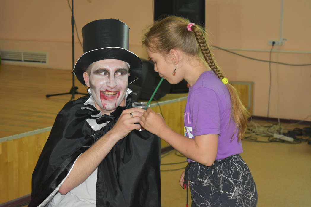 Ребята, разделившись на две команды, активно помогали финалистам – человеку Дейви и вампиру Вельмиру – выиграть конкурс. Команда вампиров и команда людей соревновалась в самом быстром заматывании мумии «Будь как я», играли в «Пока стою меня не видно», «В кого мне обратиться?» и «Крокодила».