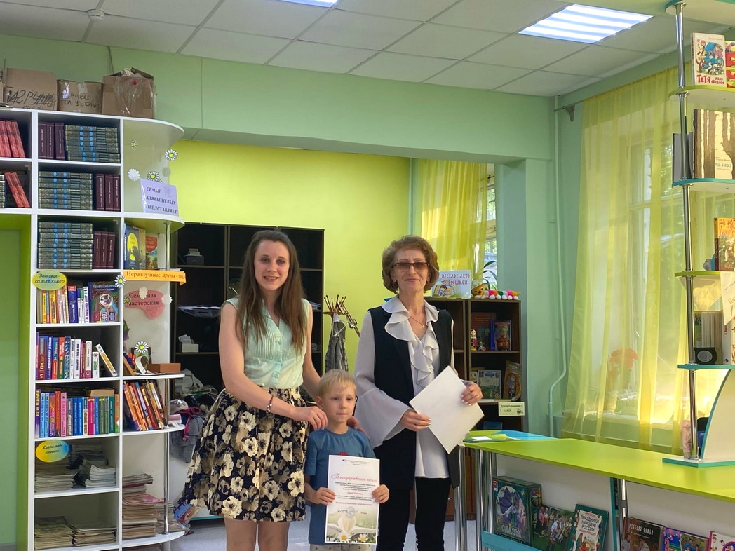 В заключение праздника всем семьям вручили «Благодарственные письма» за любовь к книге и чтению, преданность библиотеке! Грамотой «Лучшей читающей семье» наградили семью постоянного, активного многие годы читателя библиотеки - Людмилу Васильевну Волк - Левонович!