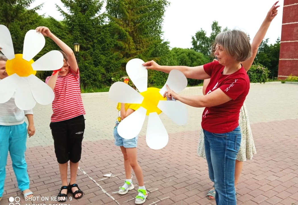 Взрослые и дети с удовольствием приняли участие в играх «Заплети косу», «Найди пару», «Собери ромашку». Непростой оказалась игра «Гусеница»: довольно сложно участникам удержать воздушный шарик между собой, не уронив и не лопнув его, передвигаясь цепочкой до финиша. Интересно, что с заданием перенести воду на коромысле молодежь справилась прекрасно. Встреча стала не только озорной и веселой, но и познавательной.