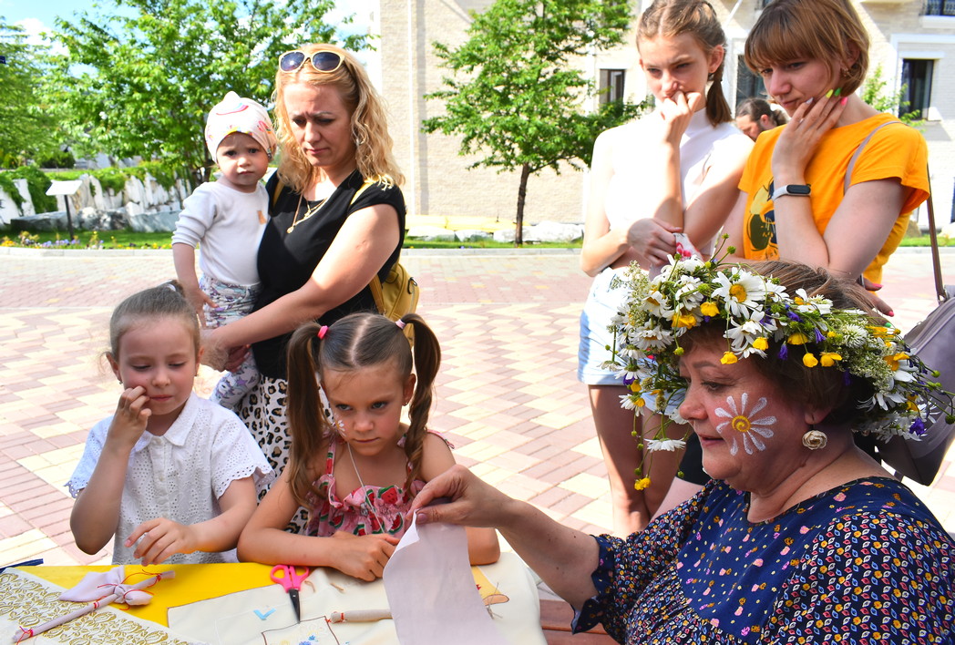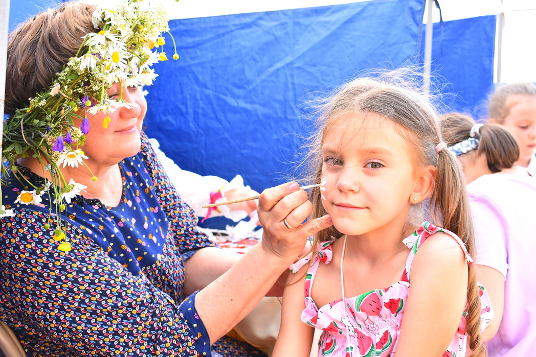 Символом Дня семьи, любви и верности является красивый и нежный цветок ромашка - любимые полевые цветы в нашей стране, о которых сложено много песен и стихов. Желающим оставить в памяти яркое событие надолго талантливый специалист по аквагриму выполнила на лицах рисунки ромашек.