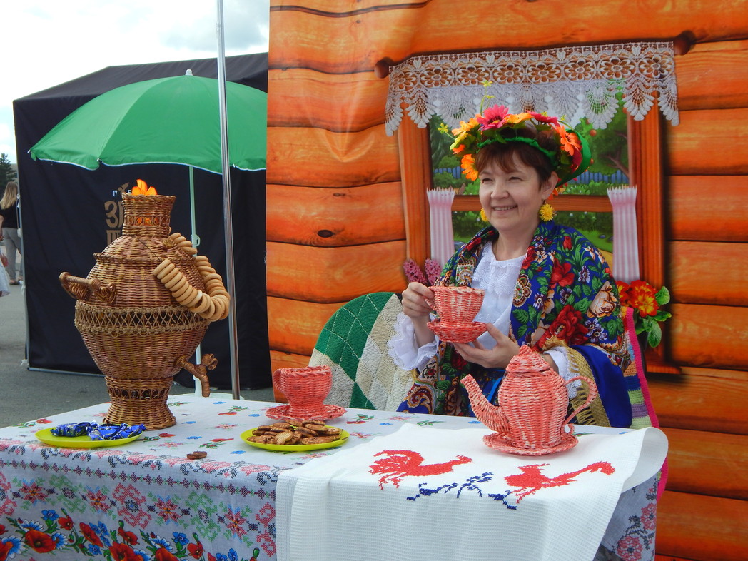 Основной задачей фотозон было создание праздничного, фестивального настроения всем тем, кто отважился переодеться в яркие и красочные наряды в народном стиле и запечатлеть себя у колодца, деревенского домика или за столом с рукодельным самоваром.