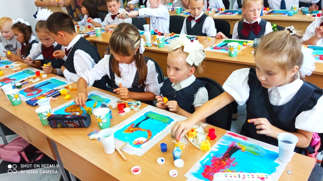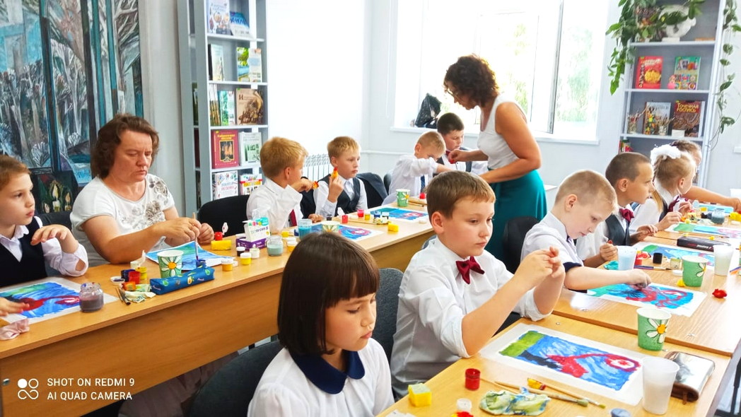 Учащиеся 3 «д» класса школы № 15 свой первый день нового учебного года провели очень ярко и необычно. 1 сентября началось для них не с учебников, дневников и тетрадок, а со знакомства с удивительным, потрясающим, волшебным миром красок. В секторе искусств Городской Центральной библиотеки в творческой мастерской «ИзображуЯ» состоялся мастер класс по живописи «Волшебная осень».