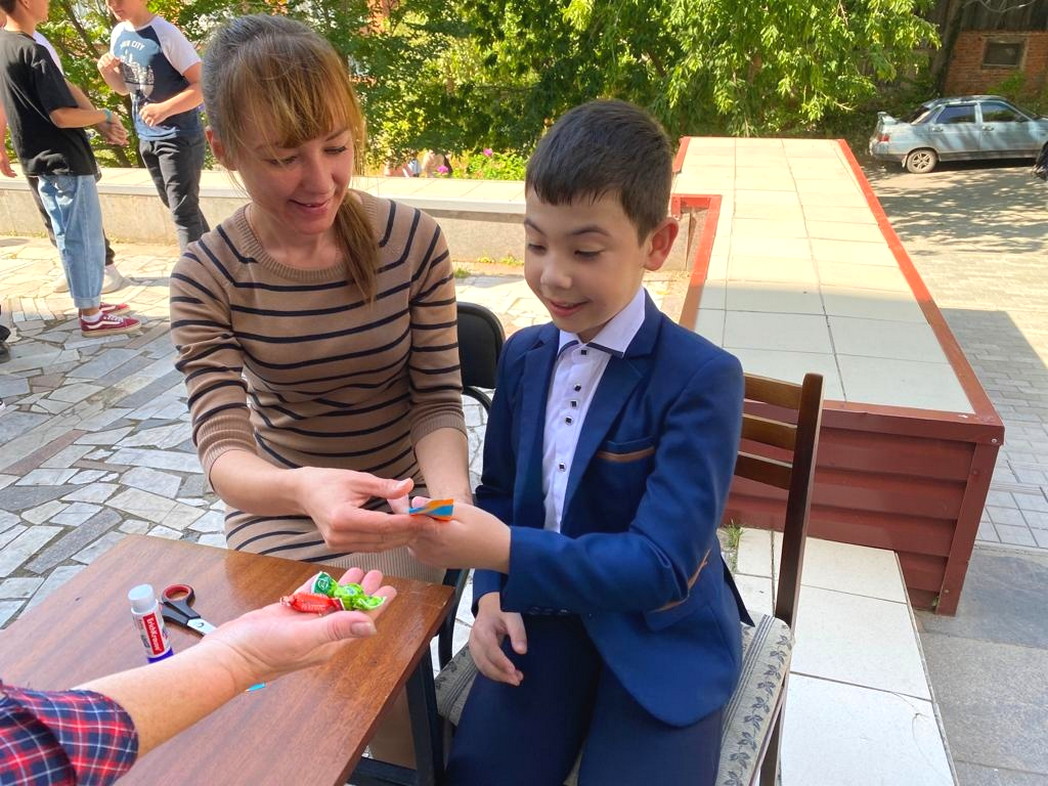 Всем присутствующим предложили поучаствовать в викторине «Здравствуй, школа!», вопросы которой были как серьезные, так и шуточные, но направленные на знание литературы, сообразительность и смекалку. Мастер-класс «Книжная закладка» научил ребят из полосок цветной бумаги делать яркие, красочные закладки в свои новые учебники и тетрадки.