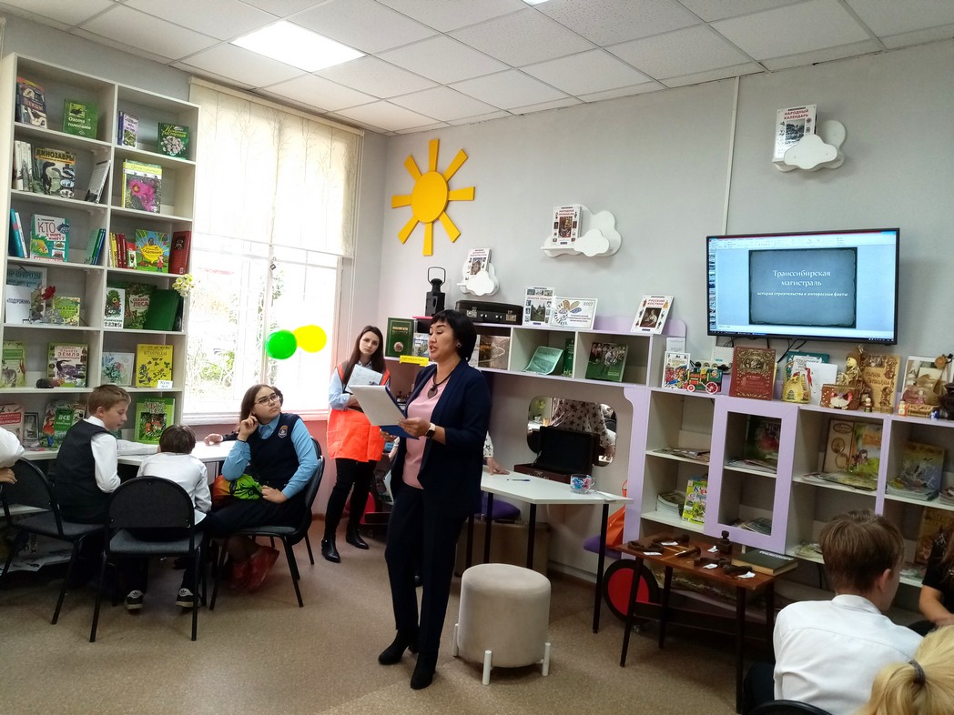 6 октября в библиотечном комплексе «Платформа 1/11» города Златоуста состоялось необычное книжное путешествие учеников школы №45 по станциям Транссибирской магистрали. Мероприятие организовано сотрудниками муниципальных библиотек и линейной технической библиотеки станции Златоуст. Основой игры стало уникальное книжное издание «Транссиб. Поезд отправляется!» (автор А. Литвина, иллюстратор А. Десницкая). Это увлекательный иллюстрированный путеводитель, в создании которого приняли участие жители станций Транссиба – обычные мальчишки и девчонки и их родители.