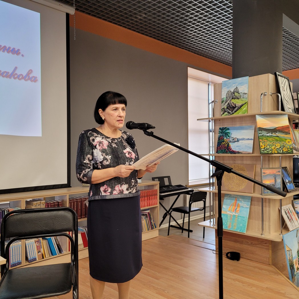 22 октября в библиотеке нового поколения, городской гостиной «Окна» состоялась очередная встреча в рамках проекта «Мир женщины». Героем ее стала член городского литературного объединения «Мартен» Тамара Кулакова. Встреча была необычно построена. Ведущая Наталья Красильникова задавала вопросы, а поэтесса отвечала стихами. Это было похоже на лирический дневник.