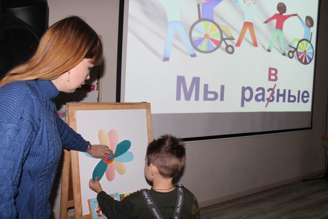 Дошкольники, вспоминая сказку Валентина Катаева «Цветик-семицветик», рассуждали о помощи другим и мечтали о своем волшебном цветке. Знакомились с «особенными детьми» участвуя в игровой беседе «Я такой же, как и ты». Узнали, что означает термин «инвалидность». Слушали рассказ Ирины Зартайской «Я слышу» и «изучали» язык жестов глухонемых. С большим удивлением рассматривали книги, напечатанные шрифтом «Брайля» и приняли участие в игре «Читай с закрытыми глазами» с помощью тактильных книг.