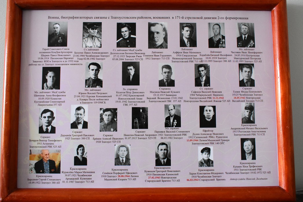Новым достижением Николая Николаевича Дындыкина стал фотоальбом о 171-й стрелковой Идрицко-Берлинской Краснознамённой ордена Кутузова дивизии – самом массовом воинском соединении, сформированным во время Великой Отечественной войны на территории Челябинской области. Формирование 171-й стрелковой дивизии проходило зимой 1942 года в Златоустовском и Кусинском районах Челябинской области. В ее состав входило 12 000 человек. Рядовой и младший командный состав был набран в большинстве своём из жителей Челябинской области. Фотоальбом включает в себя более 500 фотографий бойцов и командиров 171-й стрелковой дивизии. Один из солдат 171-ой стрелковой дивизии Сергей Степанович Берсенев до сих пор проживает в нашем городе, в сентябре этого года он отметил свой 100-летний юбилей.