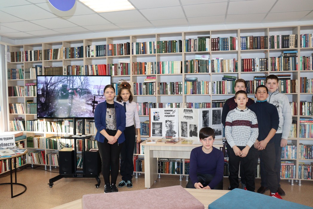 В библиотеке оформлен стенд «Время героев» с фотографиями, которыми поделились жители поселка - родственники парней, ушедших выполнять свой воинский долг. Эти фотографии займут достойное место в альбоме о наших земляках – воинах специальной военной операции. Школьники с большим интересом и вниманием слушали рассказ М.В. Галкиной, учительницы начальных классов, о мальчишках, живших и учившихся в нашем поселке, которые сегодня несут службу на фронтах специальной военной операции.