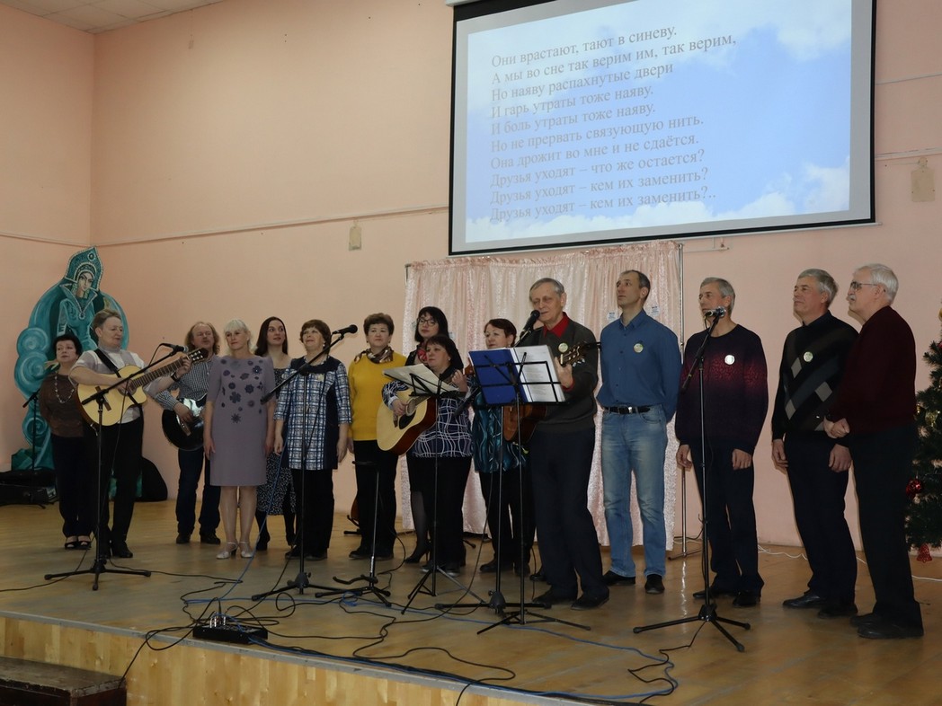 Открыла концерт песня "Моё сердце в России", родившаяся в содружестве поэта из Подмосковья Дмитрия Ботоногова и златоустовца, руководителя клуба - Сергея Косолапова. На протяжении всего вечера звучали песни на стихи златоустовских авторов - Юрия Зыкова, Юрия Колесникова, Владимира Глыбовского и других, в исполнении участников клуба самодеятельной песни в полном, как современном, так и историческом составах. Гости насладились исполнением стихов и знаменитых песен под живой аккомпанемент, а в финале встречи сюрпризом для гостей стали счастливые места, зрители, занимавшие эти места, получили от Надежды Глыбовской книги златоустовских авторов.