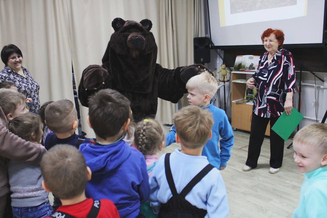 Читателям библиотеки «Аист» тоже довелось повстречаться с хозяином леса. Правда, наш Мишка был хотя и большим, но очень дружелюбным и эрудированным. Он провёл с читателями викторину о сородичах, поиграл в «Медвежьи игры» и даже продемонстрировал смешные и интересные видеосюжеты о своих родственниках. На прощание участники встречи пожелали Медведю крепкого сна и приятных сновидений и с почестями проводили в тёплую берлогу.