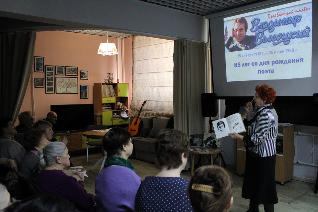 Вспомнить Владимира Высоцкого, услышать и спеть его песни, почитать стихи, увидеть его самого в кадрах из кинофильмов и спектаклей, послушать песни в его исполнении – всё это смогли члены клуба «Серебряный возраст». на встрече в библиотеке №2 «Аист». На литературный вечер «Больше, чем поэт» собрались около тридцати человек. Пришли они потому, что их детство и юность связаны с именем В. Высоцкого.