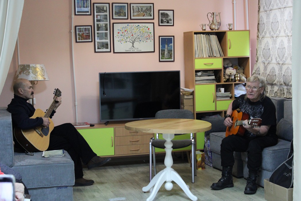 Сергей Александрович на встречу пришёл не только с женой, но и со своими друзьями, семейной парой Грибановых. Олег Геннадьевич пел песни Владимира Высоцкого, Олега Митяева, Булата Окуджавы. Получился замечательный творческий вечер авторской песни в память о Высоцком.