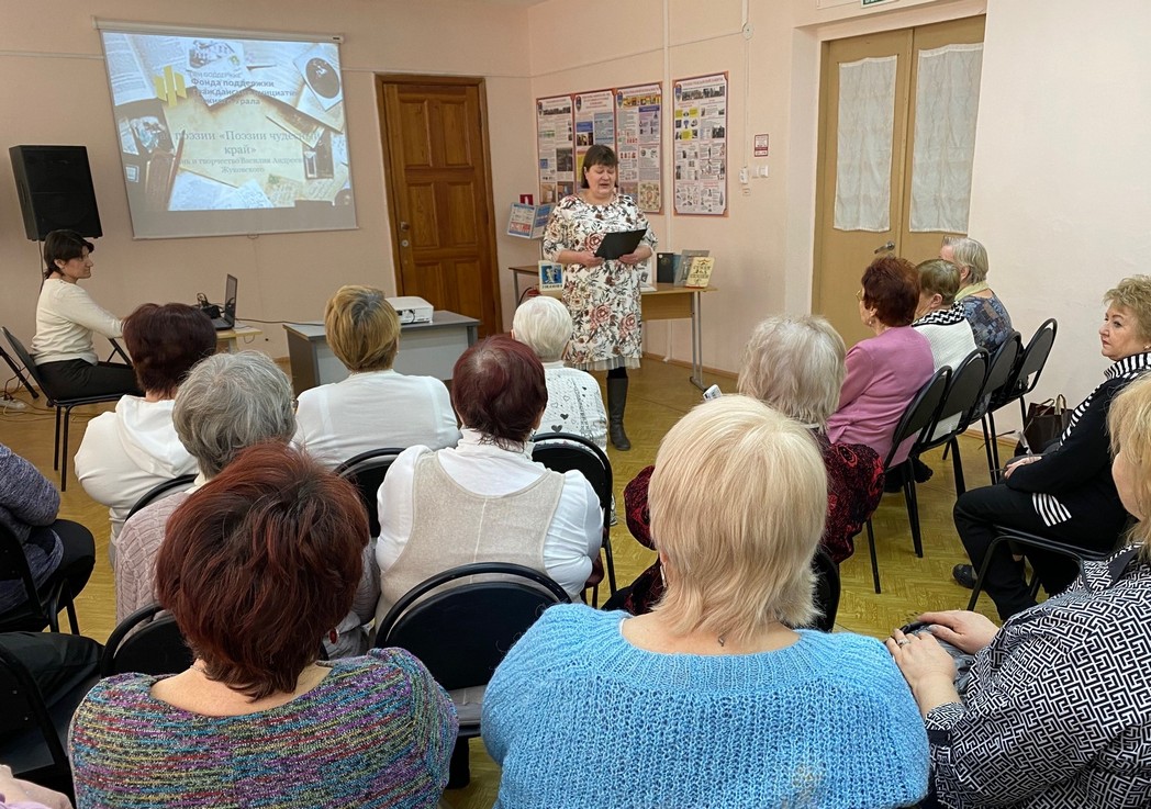 Очередная встреча людей старшего поколения «Поэзии чудесный гений» была посвящена жизни и творчеству русского поэта Василия Жуковского. Тема выбрана неслучайно, ведь в 2023 году исполняется 240 лет со дня рождения автора Гимна царской России «Боже царя храни».
