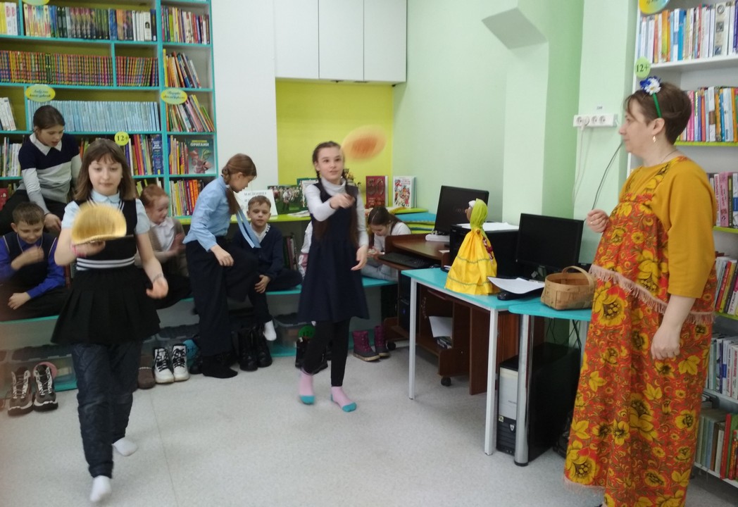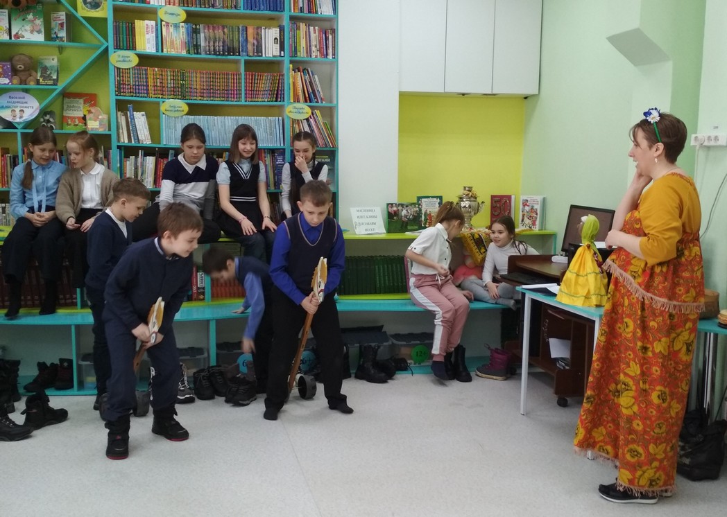 В детской библиотеке № 12 на празднике Масленицы собрались ученики 4 класса школы № 9.