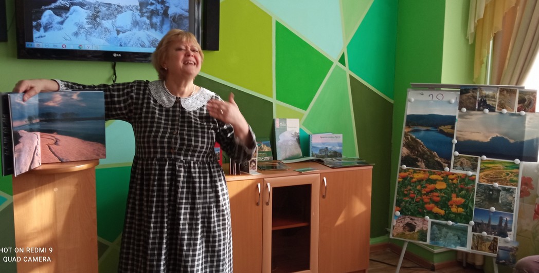 Для читателей серебряного возраста, интересующихся краеведением и природой, оформлена фотовыставка пейзажей Южного Урала, представлены уникальные материалы из фондов библиотеки. Участники с удовольствием рассматривали фотоснимки В.И. Богдановского и читали отрывки из произведений златоустовского писателя Н. В. Верзакова, вошедшие в эту книгу. В заключение мероприятия смотрели видеофильм о красотах нашего края.