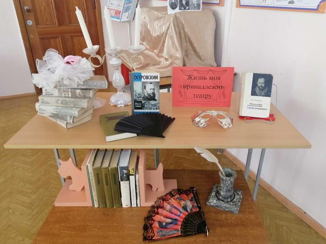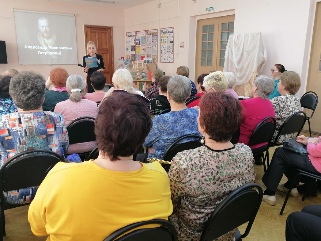 Участников встречи познакомили с биографией юбиляра, с основными этапами творчества писателя, произведения которого в равной степени принадлежат двум мирам: литературе и театру. Ни то и не другое нельзя представить без его пьес: «Гроза», «Без вины виноватые», «Снегурочка», «Доходное место», «Старый друг лучше новых двух». Присутствующие открыли для себя тот факт, что творчество писателя исключительно многообразно, а драматургия его поражает шекспировской широтой проблематики и классическим совершенством художественных форм. На мероприятии был проведен обзор просмотра литературы "Хотите знать, кто такой А.Н.Осторовский? Читайте его книги", на котором представлены самые прославленные пьесы Островского. Кульминацией встречи стала инсценировка пьесы Александра Островского «Гроза», главные роли которой сыграли участники творческой студии. В театре две главные составляющие – это актеры и зрители. Актерская труппа состояла из трех актеров, остальные были зрителями, но, сколько положительных эмоций, восторга получили каждый находящийся в зале. Аплодисменты, крики «браво», цветы – все как в настоящем театре. И это все благодаря творчеству великого автора, драматурга, прозаика – А.Н.Островскому.