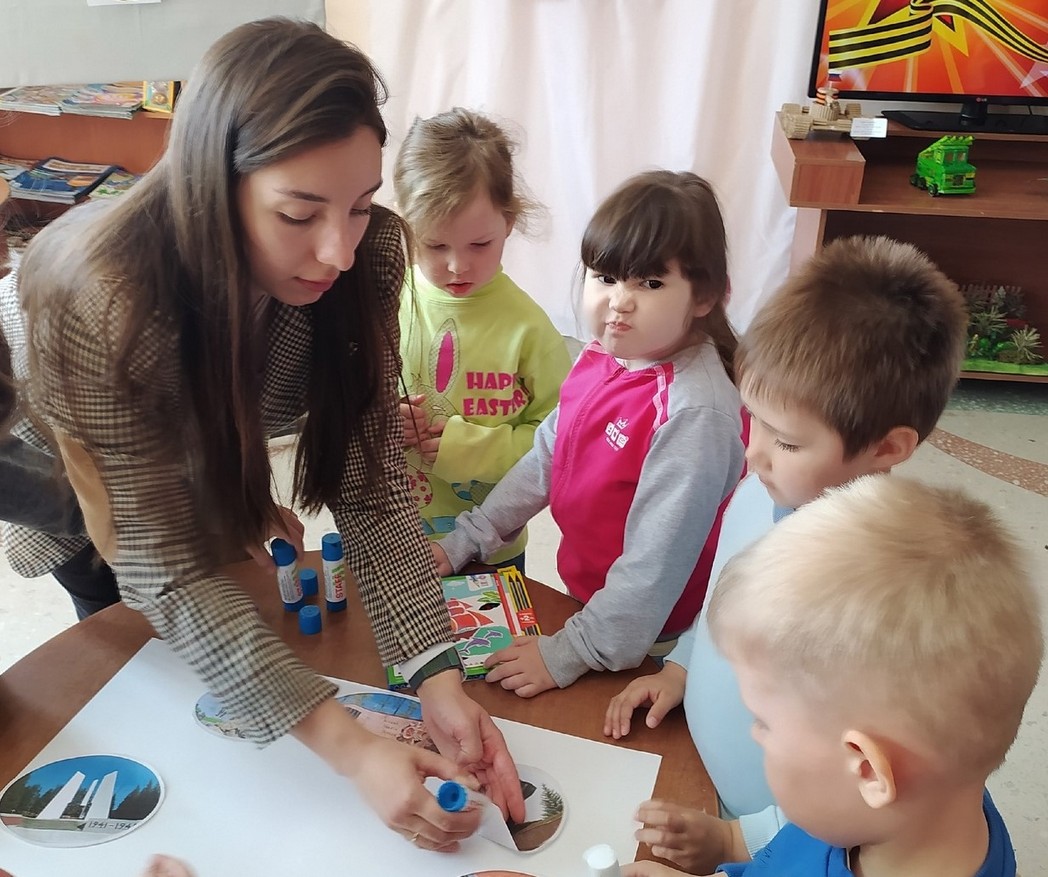 В заключение, дети и взрослые выполнили творческую коллективную работу - создали коллаж из фотографий мемориалов славы, размещенных в разных городах страны.