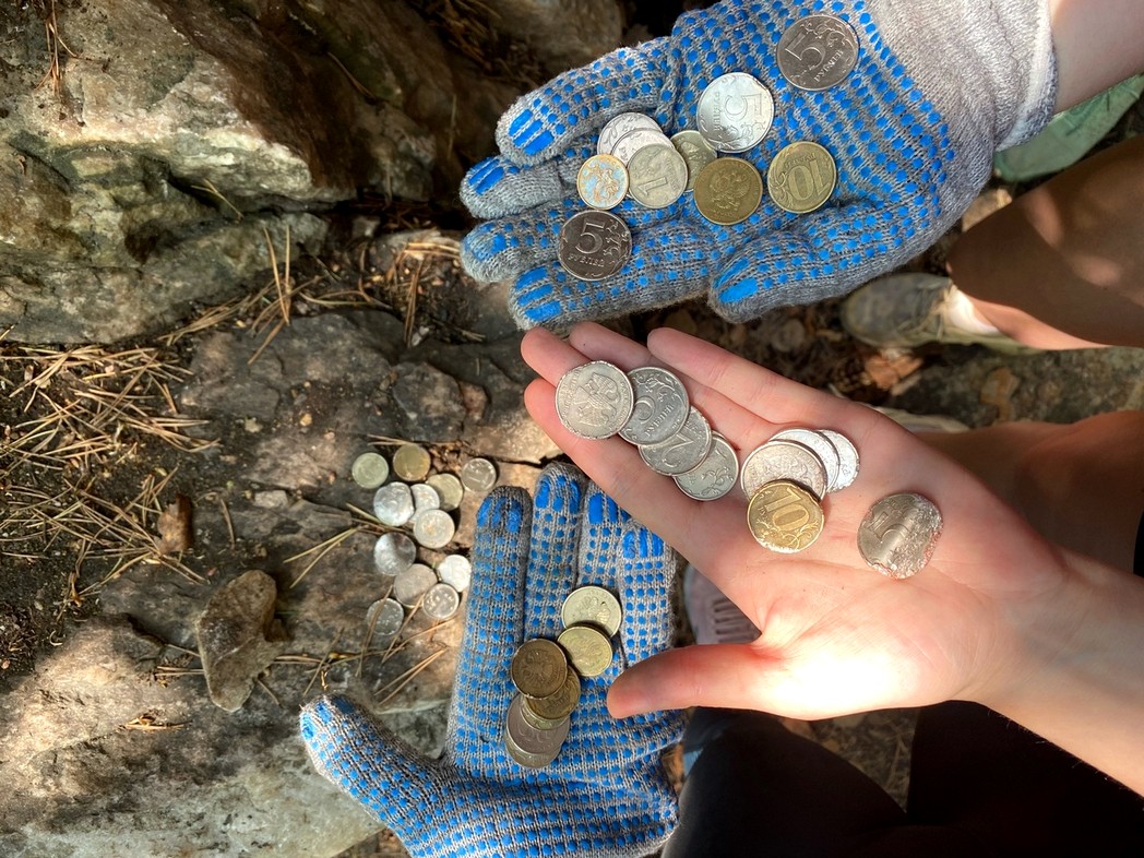 Также волонтёры помогли очистить один из каменных останцев от следов деятельности туристов – монет, которые они оставили в расщелинах скалы.