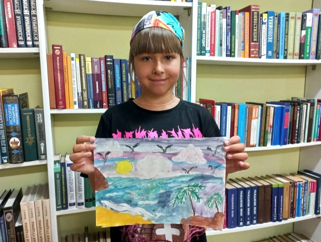 По этому поводу 4 августа в библиотеке № 22 состоялся мастер – класс «Вот оно какое – море голубое!». Участникам мастер-класса было предложено запечатлеть на листке бумаге морскую гладь и яркое, летнее солнышко.