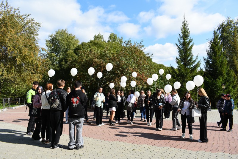 В завершении траурного мероприятия на площади у Центральной городской библиотеки в небо были отпущены белые воздушные шары в память о погибших в бесланской трагедии.