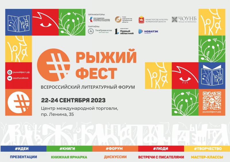 Всероссийский литературный форум #РыжийФест состоится 22, 23 и 24 сентября в Центре международной торговли (г. Челябинск, пр. Ленина, 35). Его организаторы – региональное отделение Союза журналистов России и Челябинская областная универсальная научная библиотека при поддержке Министерства культуры Челябинской области. Напомним, что форум #РыжийФест реализован на средства гранта Президентского фонда культурных инициатив.