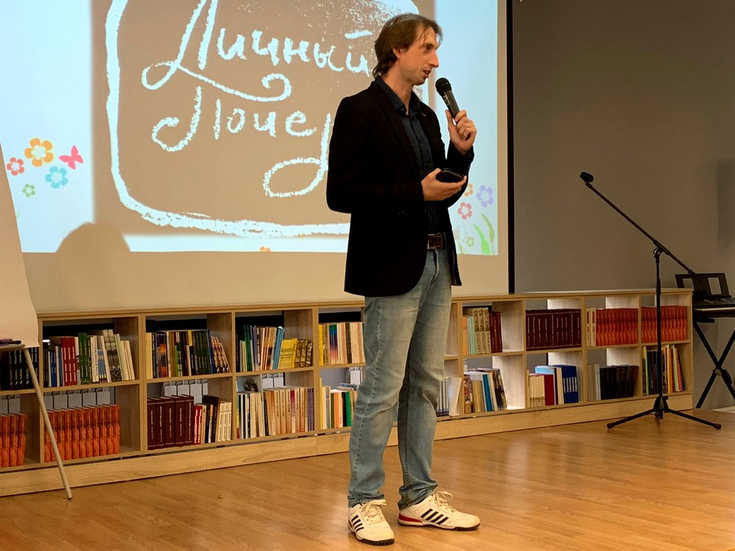 Творчество своих воспитанников представлял Леонид Токмаков. Он рассказал о студии «Личный почерк», об истории ее создания, о том, как важно для художника не только знать академические основы живописи, но и быть способным проявлять собственную индивидуальность. Для этого Леонид продемонстрировал аудитории несколько игр на развитие творческих способностей, которые часто проводятся со студийцами.