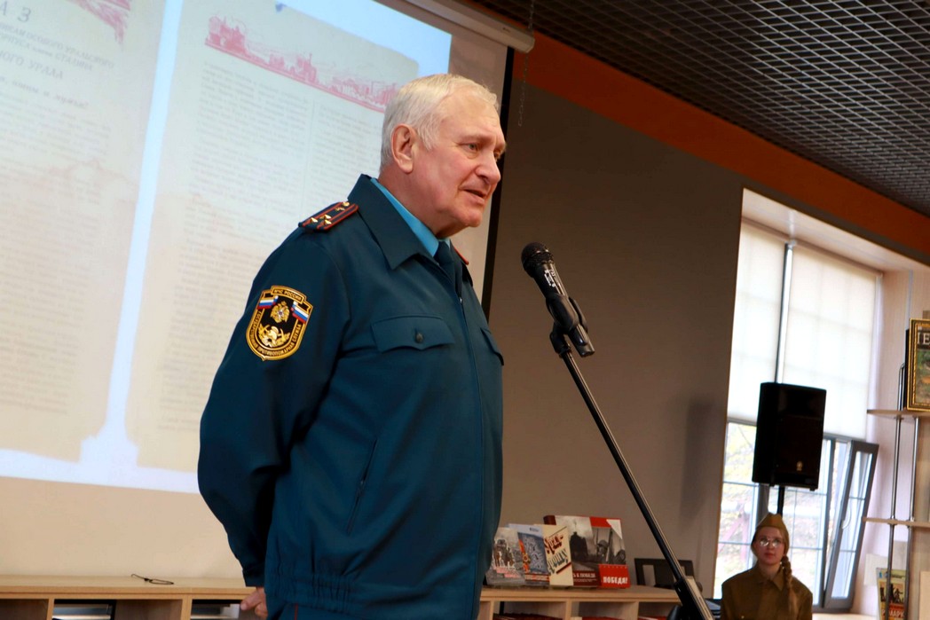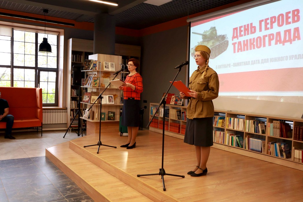 Библиотекари сектора массовой работы Красильникова Наталья Анатольевна и Аксёнова Марина Вячеславовна рассказали гостям о героизме и самоотверженности уральских тружеников. Руководитель поискового отряда «Горные стрелки» Вячеслав Рубцов ознакомил учеников с работой отряда и поделился информацией, о найденных ими в ходе экспедиций артефактов, на данный момент находящихся в музее школы № 38, одним из которых является «Наказ бойцам, командирам и политработникам особого Уральского добровольческого танкового корпуса имени Сталина от трудящихся Южного Урала».