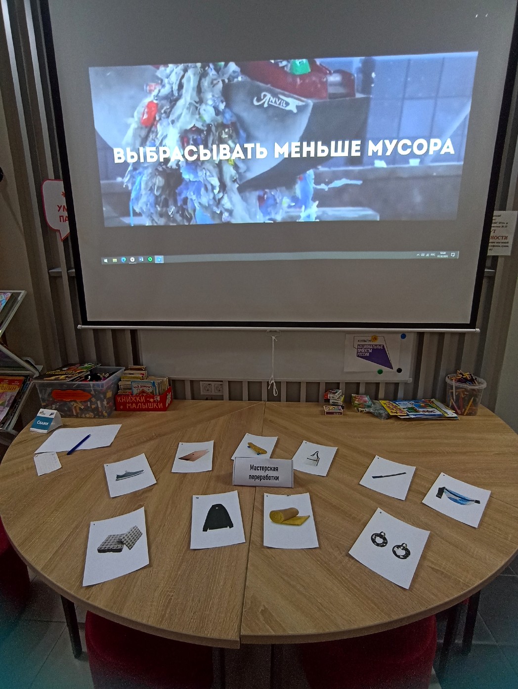 «Мастерская переработки» продемонстрировала изделия, произведенные из вторичного сырья. Ученикам предстояло угадать, чем был тот или иной предмет в “прошлой жизни”.