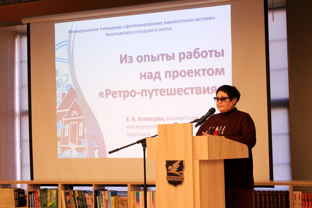 Елена Кузнецова, библиотекарь отдела краеведения Центральной городской библиотеки им. Б.Е. Швейкина г. Кыштыма, представила вниманию участников успешный и востребованный проект «Ретро-путешествия», в рамках которого организовано более 100 путешествий по городу для жителей серебряного возраста; и созданный в рамках проекта электронный ресурс «Ретро-путешествия. Кыштымские истории». Проект помогает представителям старшего поколения лучше узнать свой город и чувствовать себя активными и молодыми.