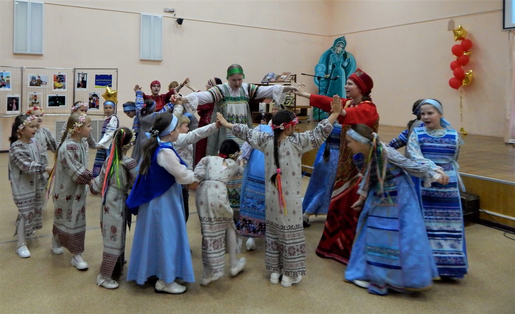 Гости встречи стали участниками «фольклорной угадайки» - разгадывали загадки и продолжали русские народные пословицы, получив в подарок книги. А затем, вместе с участницами ансамбля, приняли участие в песенно-танцевальных играх «Золотые ворота» и «Светит месяц». Подарком для юных вокалисток стало выступление фольклорного коллектива клуба «Жить здорово».