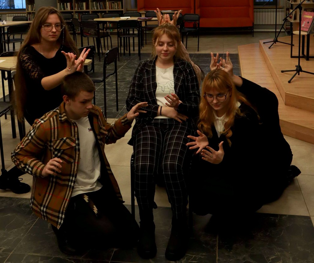 В библиотеке «Окна» состоялось сразу две игры. В одной из них «ожила» книга Льюиса Кэрролла «Алиса в Зазеркалье». Знакомство с книгой прошло в формате игры. Три команды – «Чёрный Король», «Белая Королева» и «Мартовский заяц» - соревновались в эрудиции, быстроте, знаниях этикета, умении читать закодированный текст, узнавать перевернутые песни. Одно из заданий было связано с селфи-зеркалом – сделать фото по иллюстрации из книги. За старания и активность Алиса наградила участников игры - исполнила песню о зеркалах.