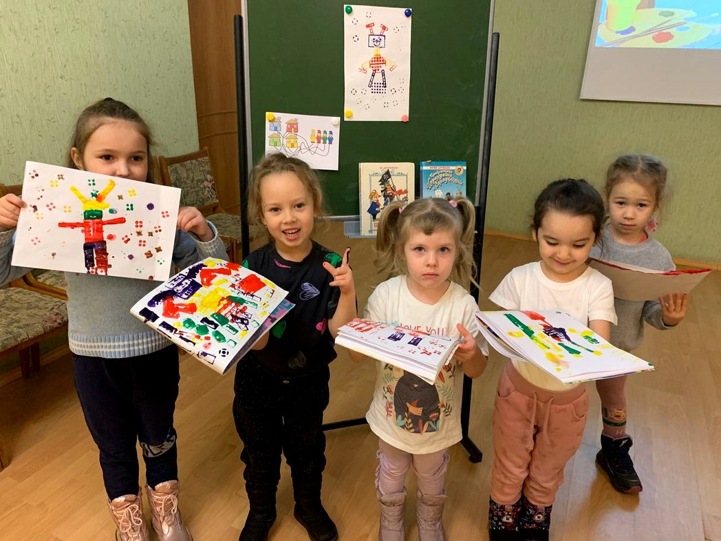 Во второй половине занятия ребята с помощью фигурок Lego нарисовали своих волшебных роботов! Каждому роботу было придумано имя и даже профессия, в которой он мог бы быть полезен.