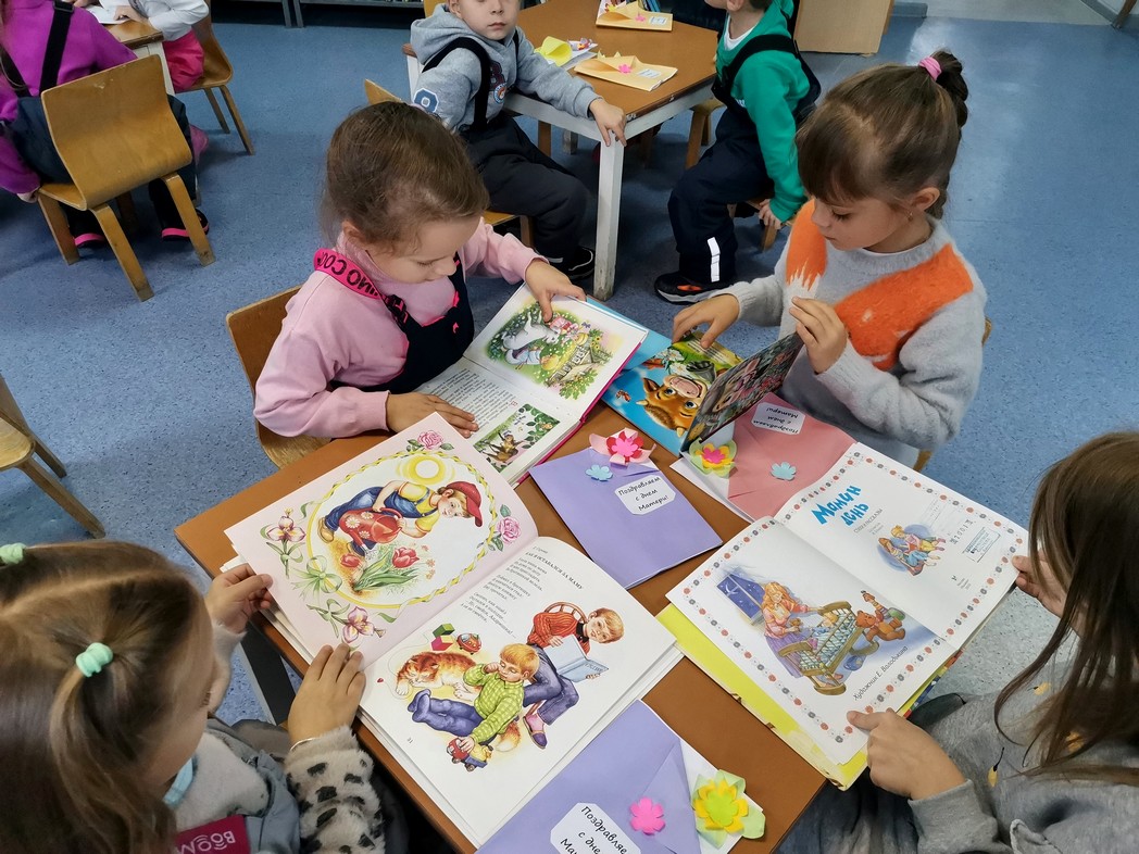 Праздничное настроение создавали «мамины» песни. Ребята познакомились с выставкой, на которой представлены книги о маме, с интересом слушали стихи.