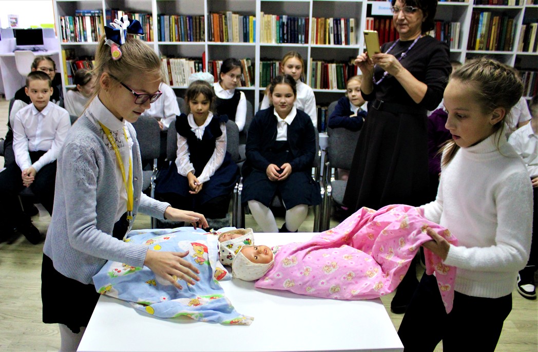 Следующим местом, в котором заочно побывали школьники, стал Дом малютки. Здесь ребята учились пеленать малышей и брать их на руки. В детском доме, участники встречи выступили в роли воспитателей, одевающих непоседливых воспитанников на зимнюю прогулку. А в роли социальных работников для пожилых граждан школьники сходили со списком за покупками в магазин и за лекарствами в аптеку. Также библиотекарь рассказала о таких социальных профессиях как сиделка, патронажная сестра, тьютор, социальный педагог, водитель социального такси и других.
