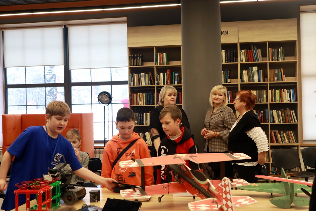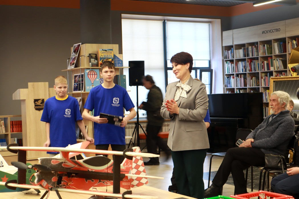 Встречу украсила выставка моделей самолётов, предоставленная Владимиром Зворским – педагогом Центра юных техников. Вдова Вячеслава Рябинина - Нина Никитична принесла модель, сконструированного им самолёта. Руководитель технопарка «Кванториум» Татьяна Накоскина представила воспитанников технопарка, которые пришли на встречу со своими моделями самолетов и продемонстрировали творения в действии.