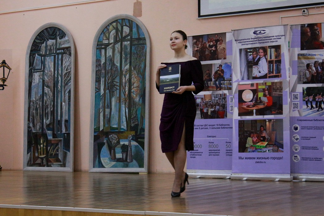 Финальным аккордом праздника стало модное книжное дефиле, в ходе которого девушки из театра моды «Maxi models» выносили на сцену книги о городе Крылатого коня, а ведущие представляли каждое научно-популярное и художественное издание о Златоусте.