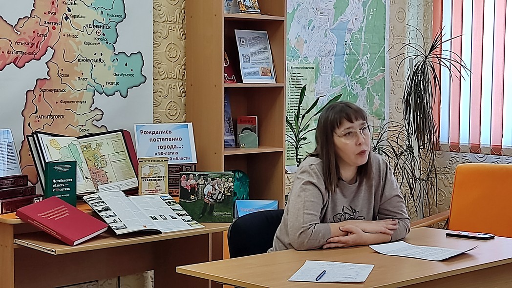 Во второй части мероприятия была проведена презентация выставки «Рождались постепенно города…», оформленной к 90-летию Челябинской области. Была дана информация о разделах экспозиции и представленной в них литературе. Все присутствующие посмотрели видеоролик о павильоне Челябинской области на выставке «Россия» на ВДНХ. В заключение библиотекари отвечали на вопросы викторины о городах нашего региона. Вопросы были непростыми, но все дружно смогли ответить на них.