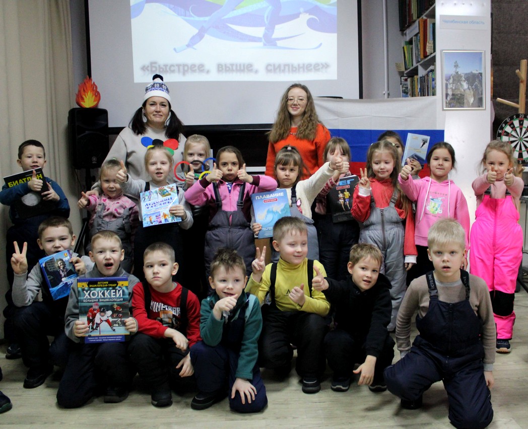 К знаменательному спортивному событию, которое проходит в городе Златоусте – Спартакиаде-2024 – в библиотеке семейного чтения № 2 «Аист» для воспитанников детского сада № 4 проведен познавательный час «Быстрее, выше, сильнее».